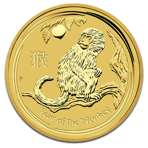 In a total of twelve editions, the Australian Perth Mint shows the zodiac signs of the Chinese lunar calendar. The year of the monkey begins in 2016 and so this animal is shown for the first time on the motif side of a coin in the Lunar II series. At CoinInvest, you can already purchase the Lunar Monkey 1/20 oz Gold 2016 coin in 2015.