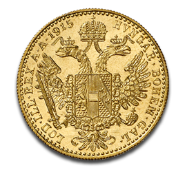 All Ducats produced after 1914, bear the date 1915 regardless of the year the coins are actually issued. The 1 Ducat gold coins also feature the same design it had during the 68 years Emperor Franz Joseph I had reigned over the Austro-Hungarian Empire.