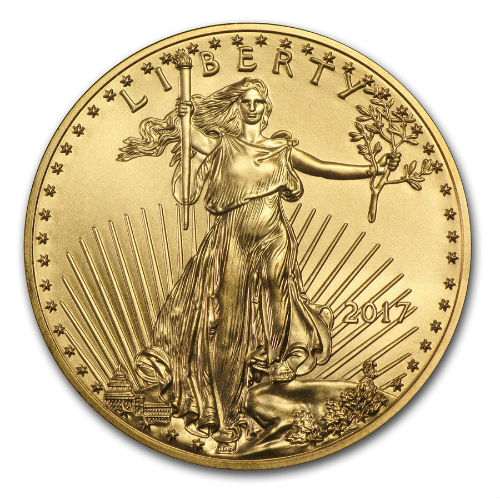The coin features the image of lady liberty on one side, with an image of two eagles on the reverse. Written on the reverse of the coin is the weight, fineness and face value of the coin. The face value of the 1 Ounce gold Eagle is $50 USD.