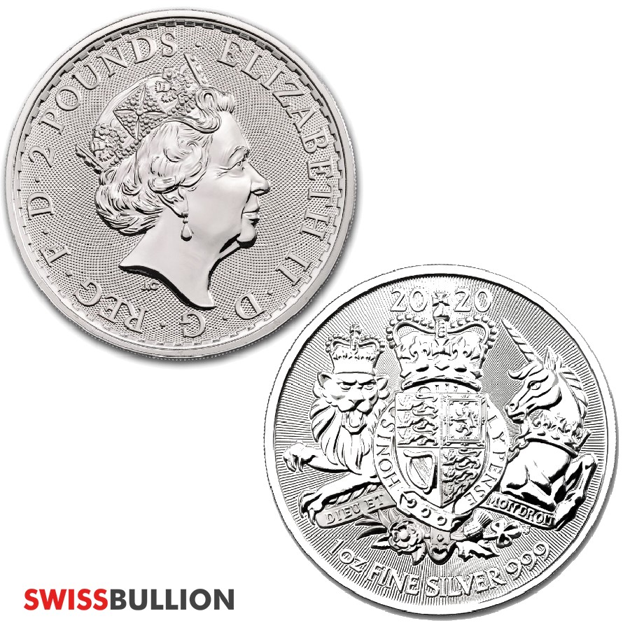 The 1 oz 2020 silver royal arms coin is a product of the Royal Mint featuring the Royal Arms, which is a symbol of the strength of her Majesty’s kingdom. This amazingly designed silver coin has a purity level of .999 fine silver. The iconic Royal Arms was originally designed by Eric Sewell and revised by Timothy Toad for the 2020 silver royal arms coin.