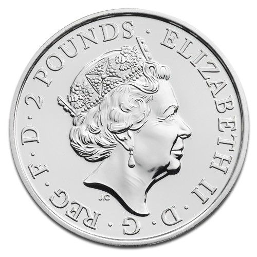 As with all British coins, the front shows the Head of State Queen Elizabeth II. After 16 years of the portrait of the queen by the artist Ian Rank-Broadley being seen on the coins of the Commonwealth, since 2015 they have shown an updated image of the monarch by Jody Clark on the nominal side. The inscription states the official payment value of "2 Pound" as well as the name of the depicted "ELIZABETH II" with the additional abbreviations "D.G. REG FID DEF" referring to the Latin words "Dei Gratia Regina Fidei Defensor" (Queen by the grace of God, defender of the faith.