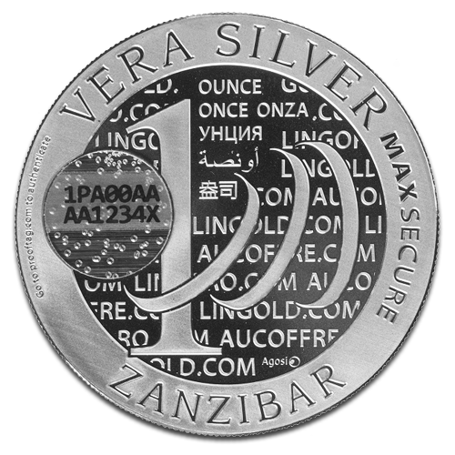 The Vera Silver Zanzibar is Tanzanian legal tender. It is struck in .999 fine silver. The coin is QR Coded on the reverse side in order to guarantee authenticity, The Silver Zanzibar comes individually prooftag-sealed and struck by Agosi.