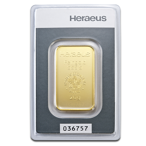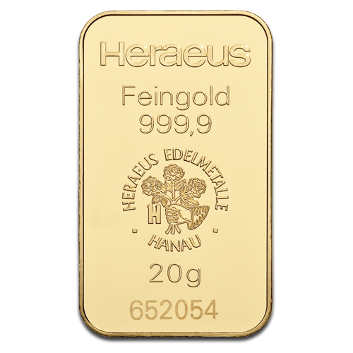20 gram Heraeus minted gold bar.