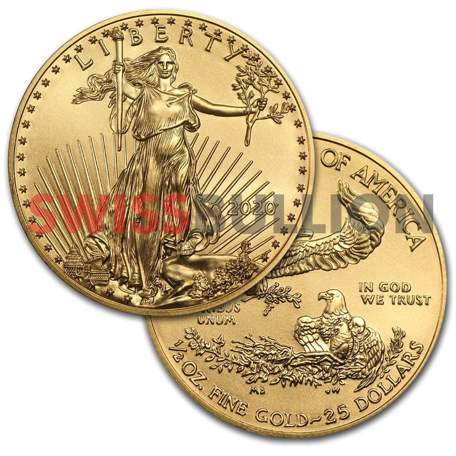 The 2020 1/2 Gold Eagle American coin is designed as the pioneering coins launched in 1986. The design of the American gold eagle coin was inspired by the St. Gauden gold coin. This coin is readily available to investors, but the U.S mint no longer produces it. Furthermore, the symbol of liberty engraved on the front of the coin also appears on the original St. Gauden gold coin.