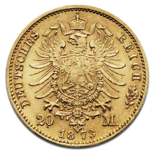 King Johann, Saxony, 20 Mark, 7.16g Gold, 1872-1873