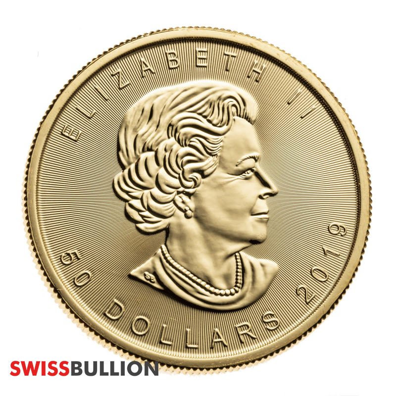 Each 2019 gold Maple Leaf coin contains one troy ounce, or 31.105 grams of gold bullion. The coin has a face value of $50 Canadian Dollars (CAD).