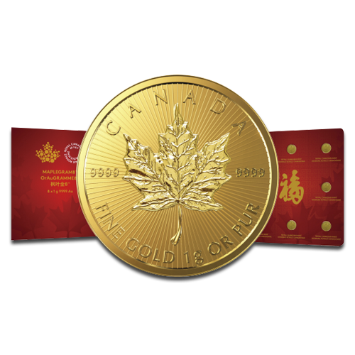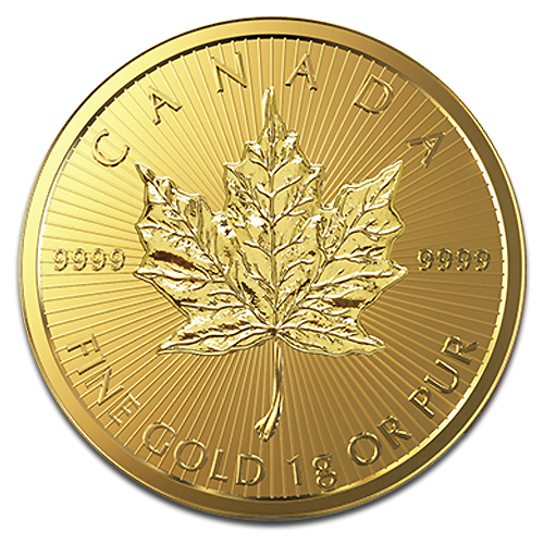 The Canadian Maple Leaf series is produced by the Royal Canadian MInt. Each coin is 99.99% pure investment grade gold bullion.