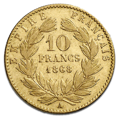 Napoleon III. with Coronary, 10 French Francs, 2.9g Gold, 2nd choice, 1854-1869