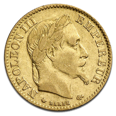 Napoleon III. without Coronary, 10 French Francs, 2.9g Gold, 1854-1860