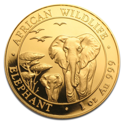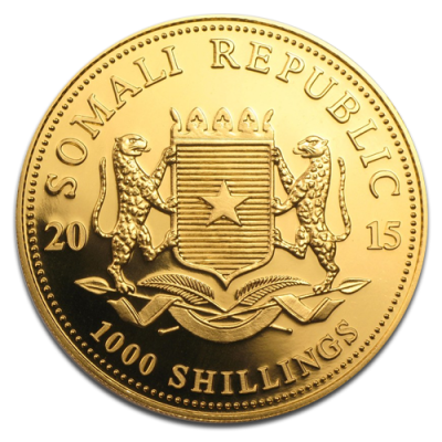 Somalia Elephant, African Wildlife, 1000 Shilling, 1oz Gold, 2015