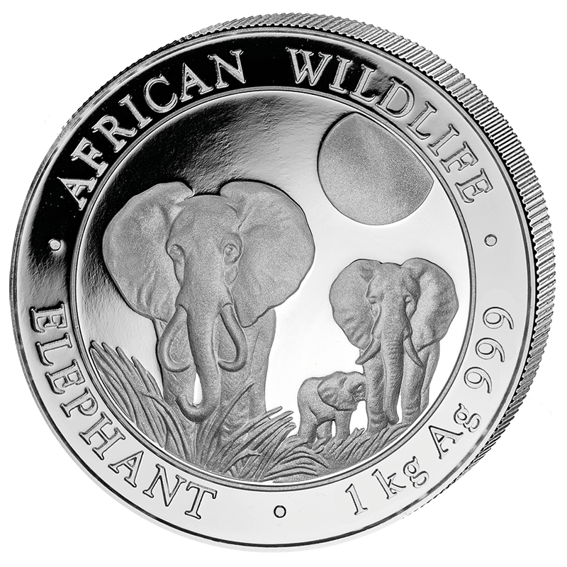 Since 2004, the number of Somali silver coins "African Wildlife Elephant," has been minted by the Mint of Bavaria in Germany. This silver coin has a purity of 999/1000 and is broadcast in the home currency of the Republic of Somalia, the Somali Shilling, being a legal tender in the country. The value of this particular coin is 1.000 Somali shillings.