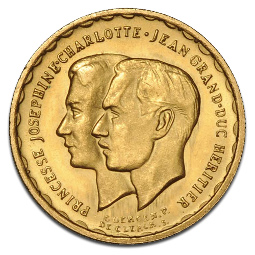 - Wedding Joséphine Charlotte & Jean, 20 Luxembourgian Francs, Gold, 1953